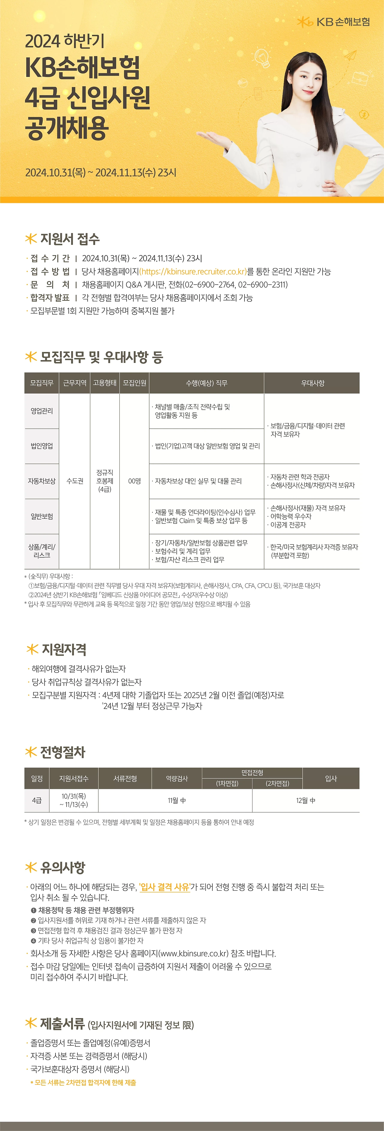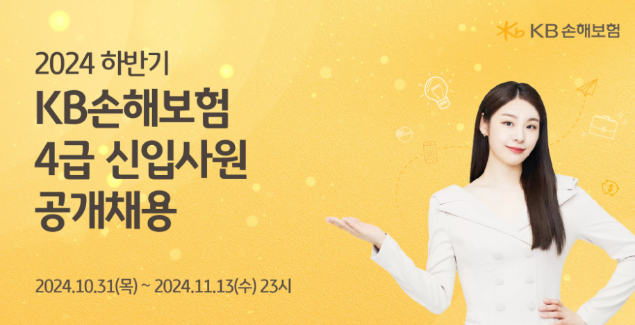 KB 손해보험에서 2024년 하반기 4급 신업사원 공개채용을 진행합다.